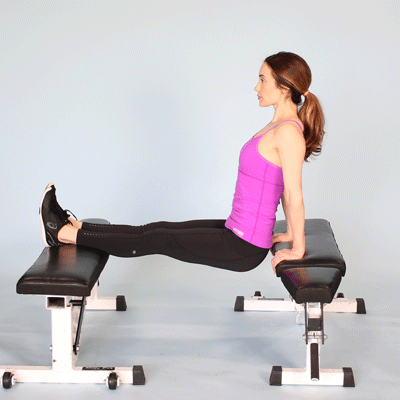 • Set a barbell across your hips while doing dips between two benches.