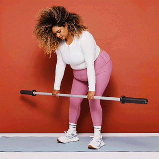 • Hinge forward holding a light barbell with a reverse grip.