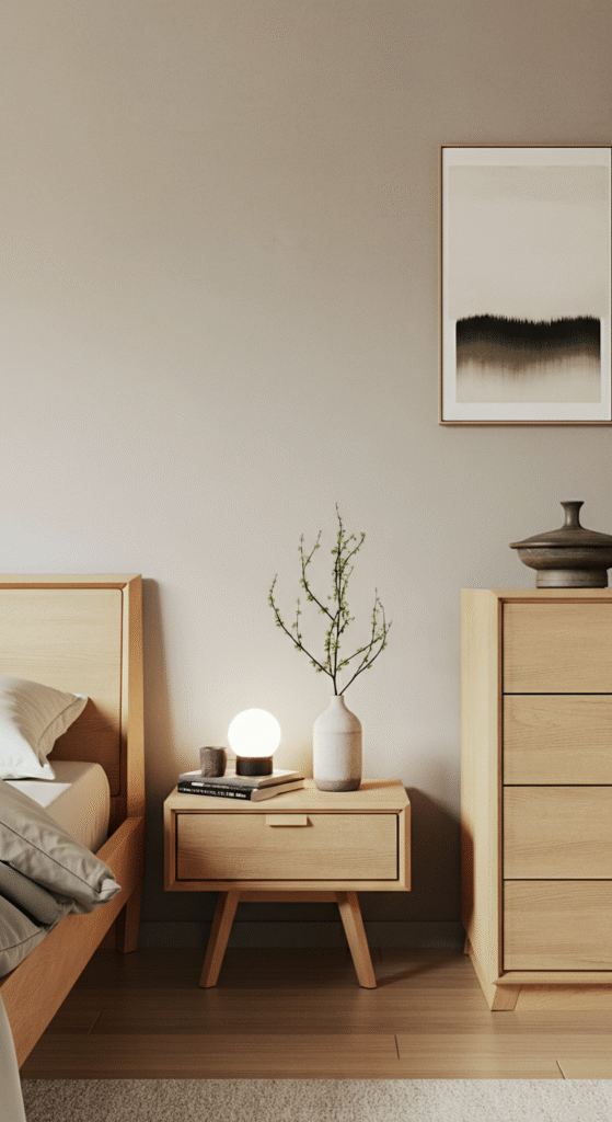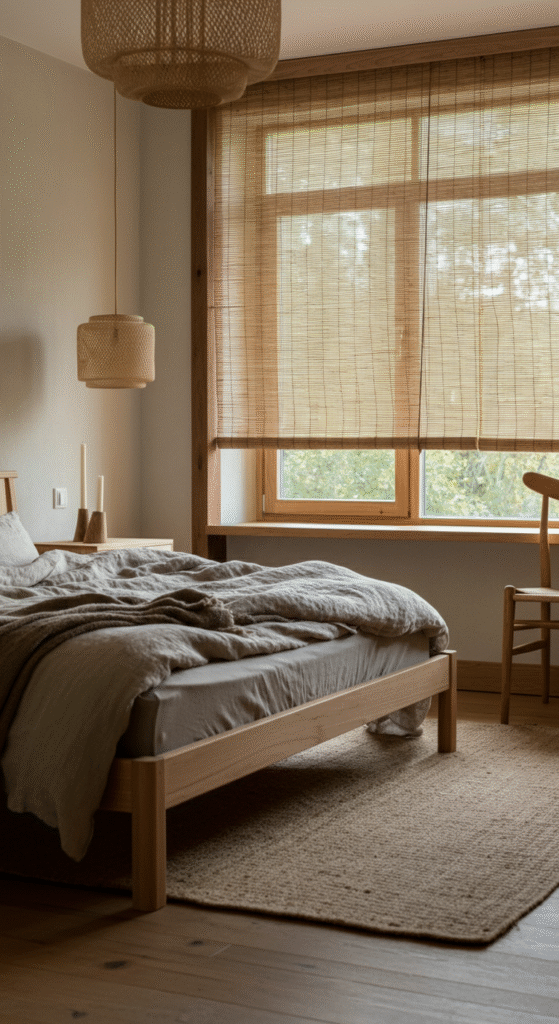 One of the core principles of Japandi is the use of natural materials. Wood, bamboo, and linen add texture to the space while maintaining a serene, organic feel.