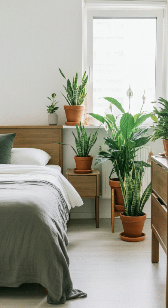 Plants are essential in Japandi bedrooms, as they bring in a touch of nature and promote air quality. A few carefully placed plants can create an inviting space while maintaining the minimalist feel.