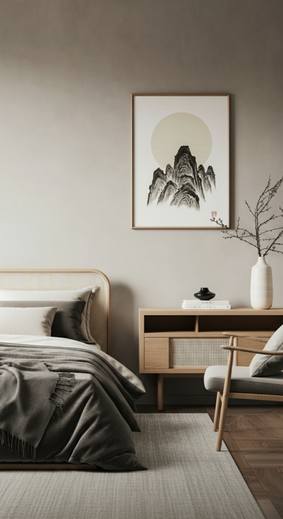 Japandi design doesn’t require bold, attention-grabbing decor. Instead, it’s about subtle elegance. Japanese art, such as calligraphy or traditional prints, can add just the right touch to your bedroom without overwhelming the space.