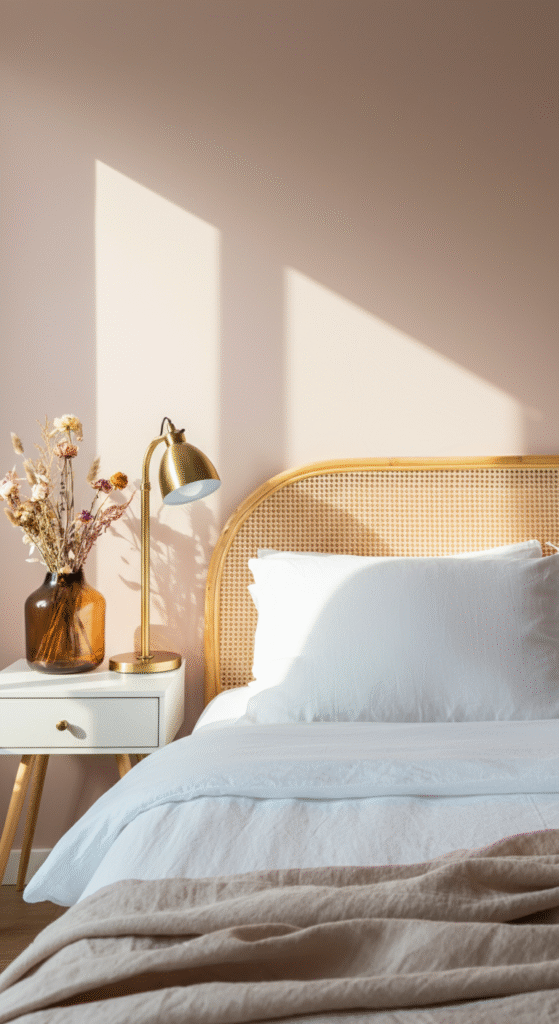 Blush pink is gentle, comforting, and subtly romantic. It creates a soft boho atmosphere without feeling too sweet or too bright. The trick is choosing a dusty blush instead of a bubblegum tone.