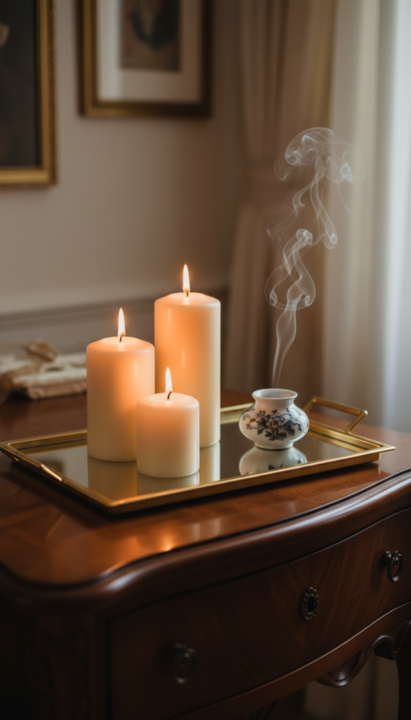 Engage your sense of smell and sight simultaneously. The flickering light of candles combined with earthy scents like sandalwood or patchouli sets a moody, romantic tone.