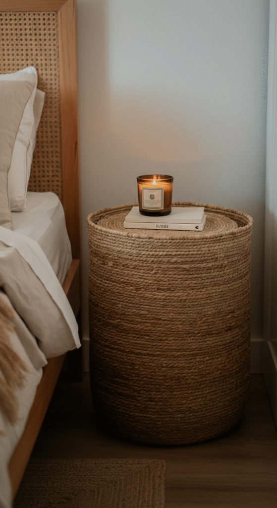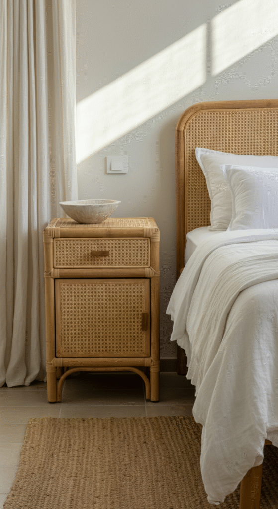 2. Rattan or Cane Nightstand for Breezy Coastal Boho