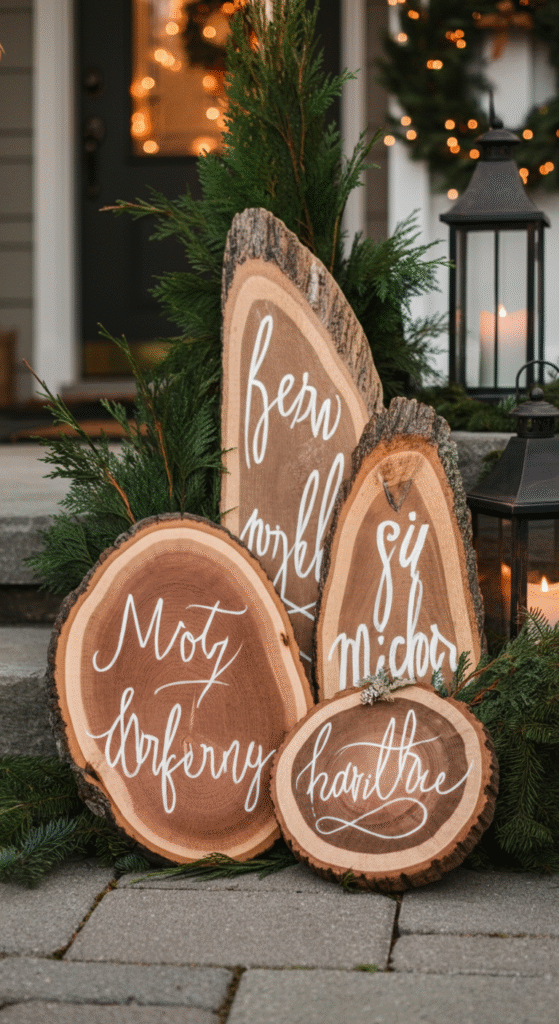 3. Rustic Wooden Signs With Earthy Holiday Messages