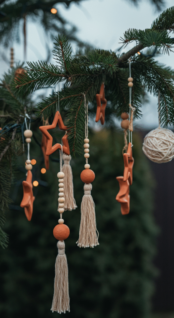 8. Handmade Ornaments Hanging From Tree Branches