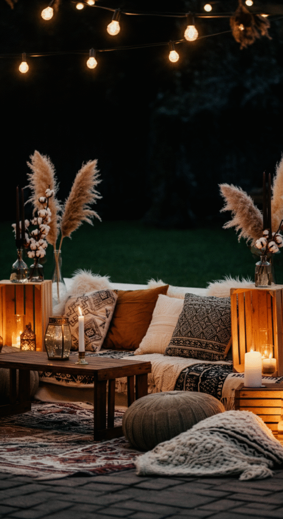 9. Bohemian Outdoor Blanket Seating Nook