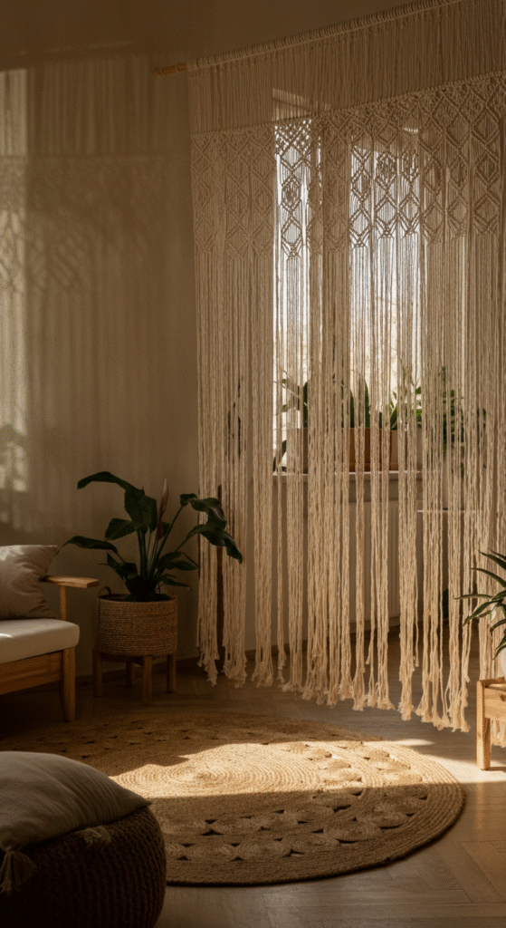 1. Macramé Curtains — The Soulful Divider