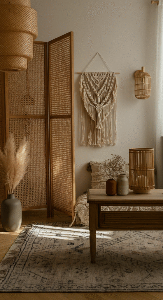 Welcome to the art of living room separators, where structure meets spontaneity. From macramé curtains to rattan screens and indoor plant walls — the right separator can make your boho space feel both grounded and limitless.