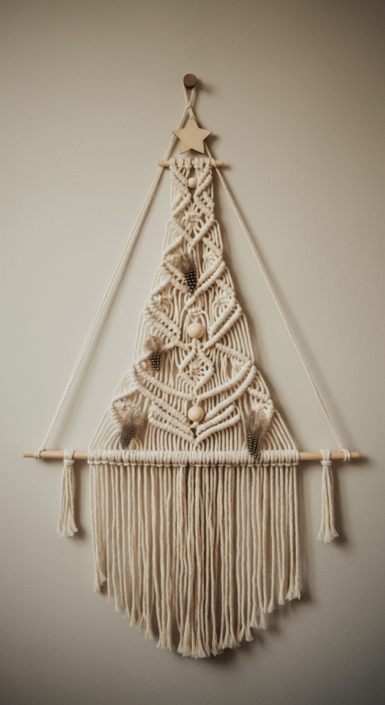 You can use macramé for wall hangings, tree decorations, or even a unique Christmas tree. It adds texture and a boho touch to your holiday setup.