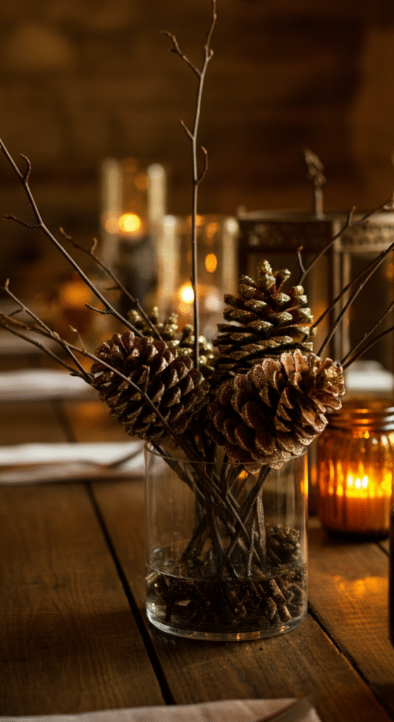 Embrace the rustic charm of pine cones, twigs, and branches in your boho Christmas décor. Whether you’re hanging them from the ceiling, creating a centerpiece for your table, or using them as part of a wreath, these natural elements add a woodland-inspired aesthetic that perfectly complements the boho style. You can even spray-paint them gold or silver for a subtle festive touch.