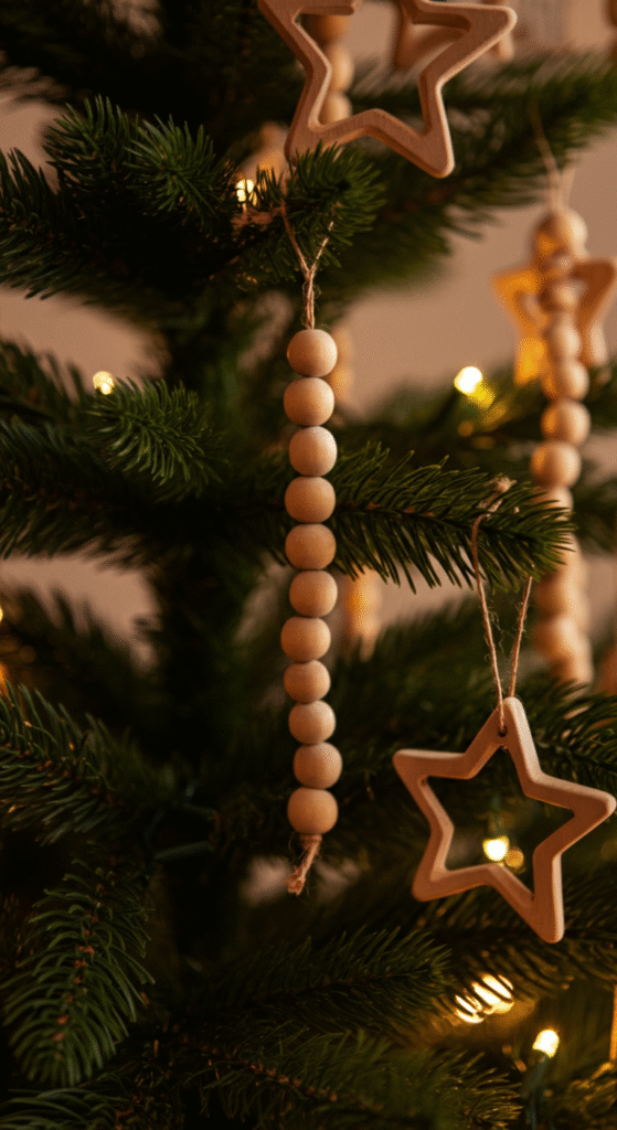 Instead of the typical shiny, mass-produced ornaments, embrace handmade wooden ornaments that align perfectly with boho décor. Whether it’s a set of hand-carved reindeer, simple wooden stars, or mini wooden beads, these natural elements bring a touch of rustic charm to your tree. You can also hang them as part of a garland on your mantel or around windows for an added bohemian flair.