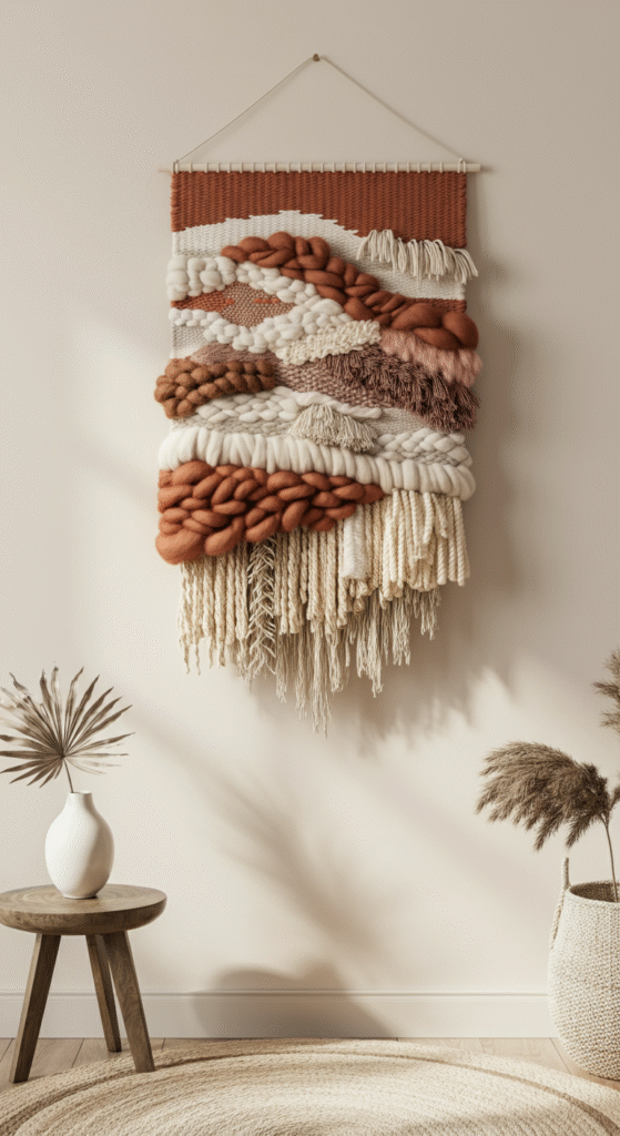 Elevate your Christmas décor by adding boho-inspired woven wall hangings. These can range from macramé to handwoven tapestries, each piece bringing a sense of craftsmanship and charm to your space. Hang them above your fireplace, or use them to add texture to bare walls in your living room. The natural fibers and neutral tones will create a lovely contrast with the festive touches of your holiday decorations.