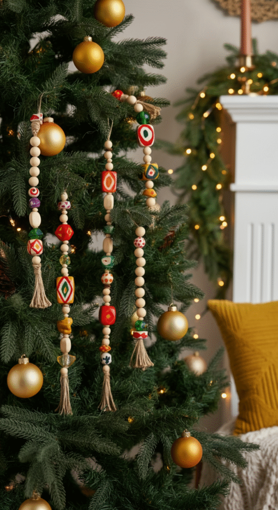 Add a pop of color to your tree or mantel with colorful, beaded garlands. Choose from wooden beads, glass beads, or even hand-painted ones to create a festive atmosphere with a boho touch. These garlands can be draped along the tree, hung on walls, or even woven through a set of string lights to give your space a twinkling, whimsical feel.