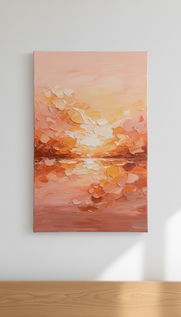 The sun is a recurring motif in bohemian design, symbolizing warmth and energy. Abstract representations of sunsets—using sweeping brushstrokes and heavy texture—can create a calming focal point. Look for gradients of pink, orange, and yellow that mimic the “golden hour.”