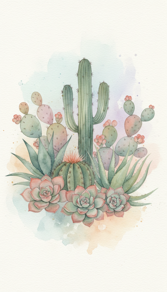 6. Watercolor Cacti and Succulents