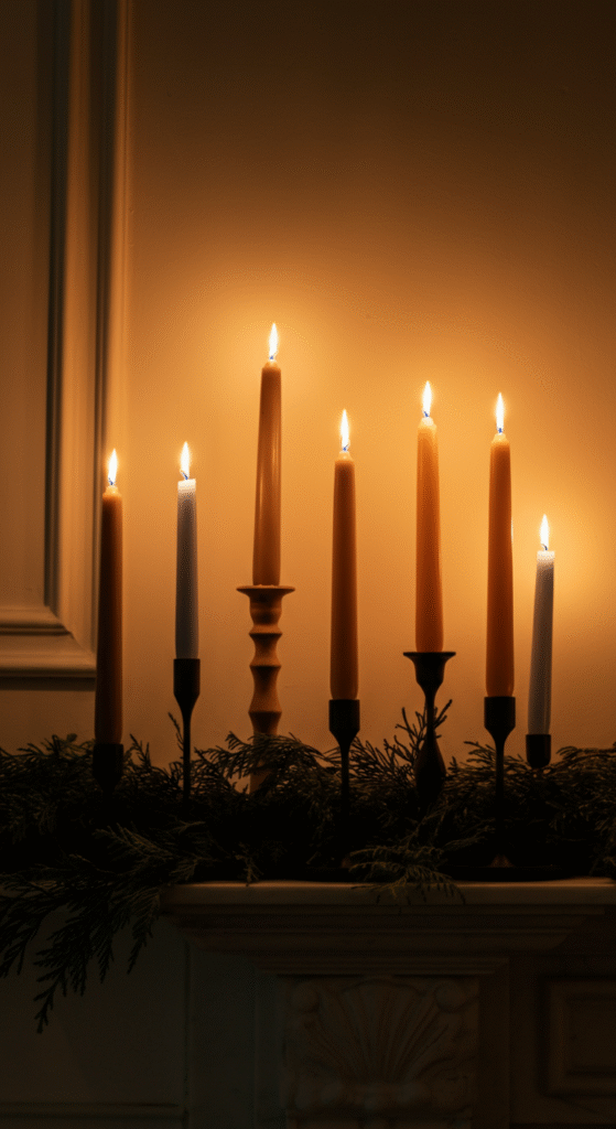 Interesting fact: Before electric lighting, candles were the primary symbol of warmth, celebration, and gathering during winter festivals. That’s why candlelit mantles feel nostalgic and emotionally grounding.
