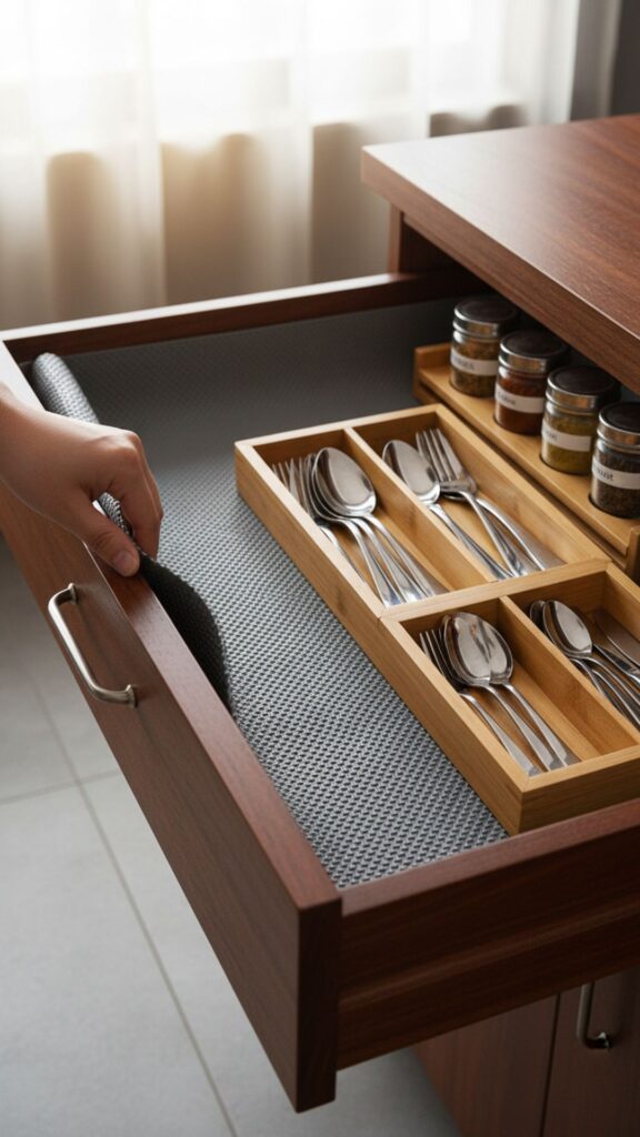 The best organizers in the world are useless if they slide to the back of the drawer every time you close it. Line every drawer with a high-quality non-slip grip liner before putting your bins in. It keeps everything firmly in place and protects the wood from scratches.