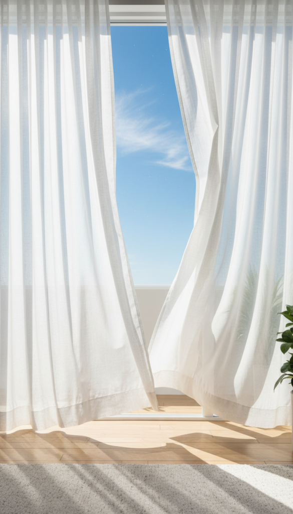 - Fabric: Choose sheer linen or cotton curtains that billow in the breeze.