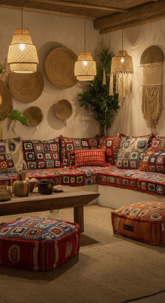 Bohemian coastal living rooms often feature warm tones, textured fabrics, and an array of woven materials, making them the perfect choice for a U-shape sofa that encourages comfort and relaxation.