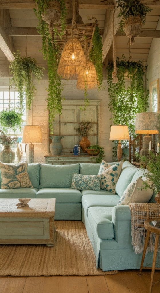 Incorporate vintage elements like antique lamps, weathered wood furniture, and nostalgic coastal prints for an extra dose of charm.