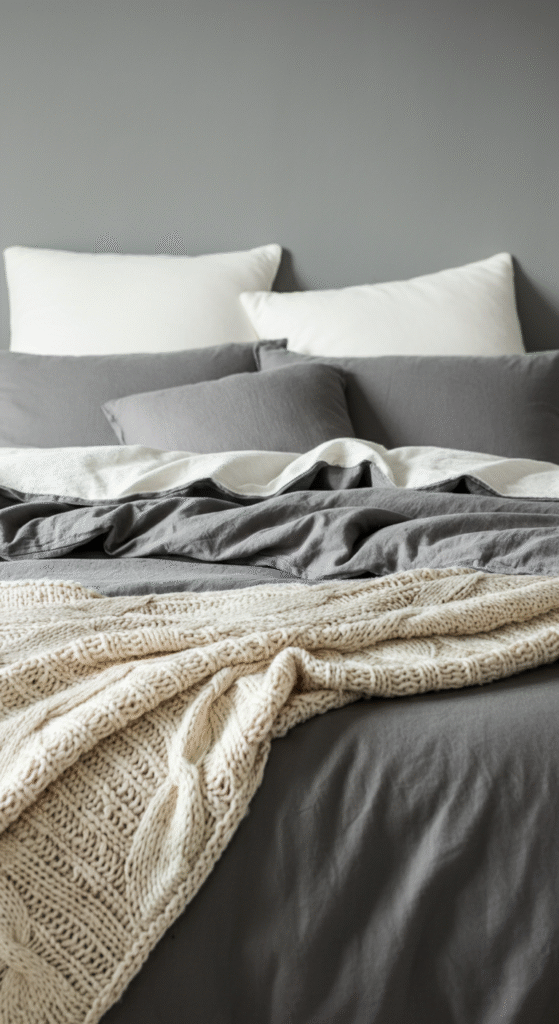 Layer your bed with soft sheets, fluffy pillows, and cozy throws. Use breathable fabrics like cotton or linen for comfort.