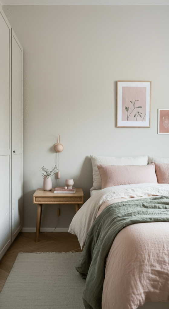 Blush pink, muted sage, dusty blue, or pale lavender introduce personality without overwhelming the space.