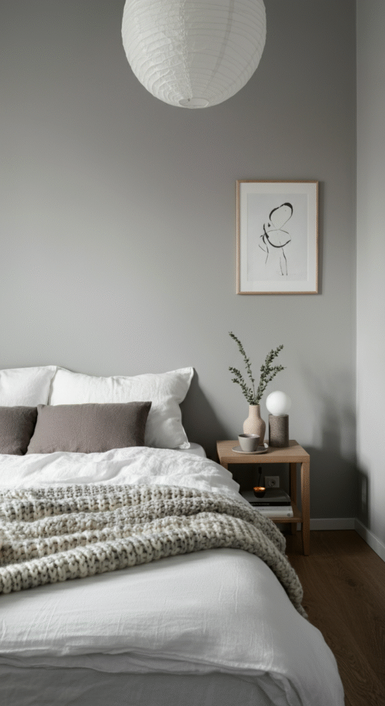 9. Scandinavian Bedroom With Soft Gray Palette