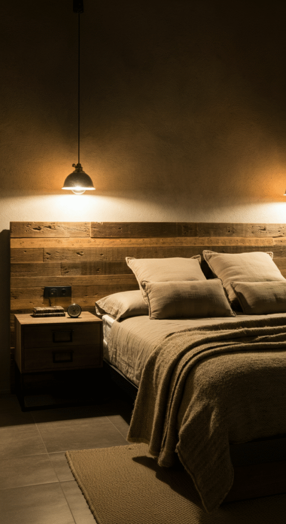 This style looks best with soft beige bedding, warm lamps, and textured throws. It creates a grown up kind of coziness. A little dramatic but still relaxing.
