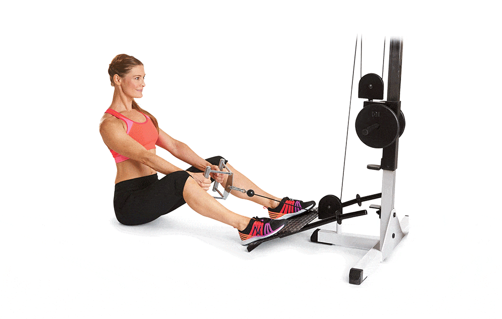 - Pull the handles toward you, squeezing your back muscles.