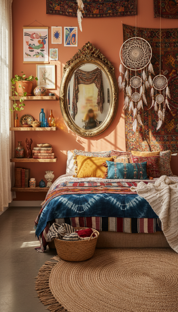 Lastly, it’s the little details that truly make a Boho bedroom shine. Think woven baskets, vintage mirrors, dreamcatchers, and unique trinkets from your travels. These accessories add charm and personality, making your space feel like your own.