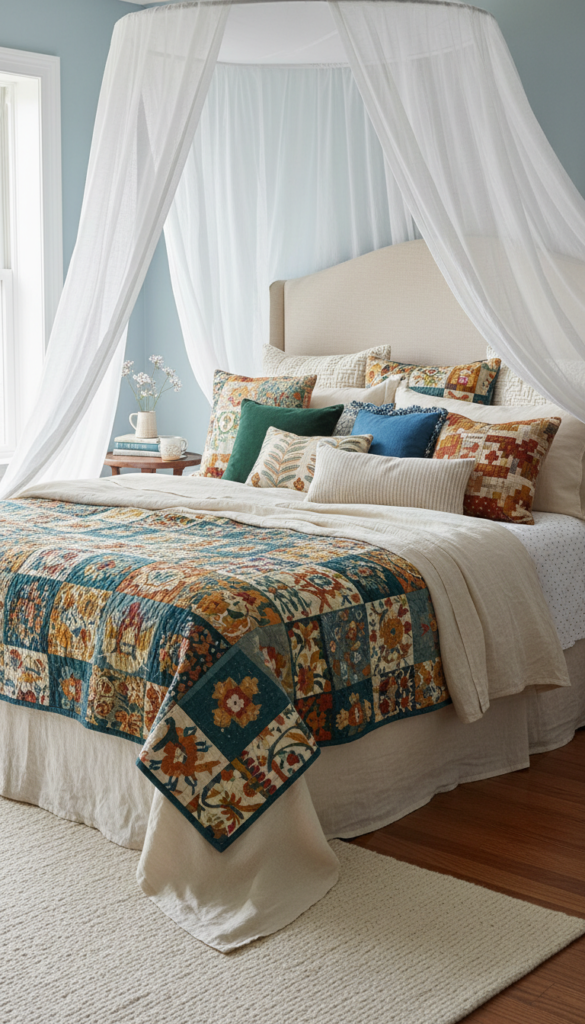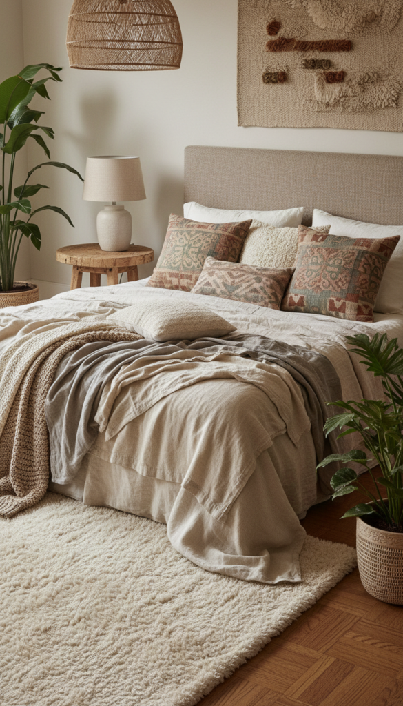 9. Boho-Inspired Bedding with Layered Textiles