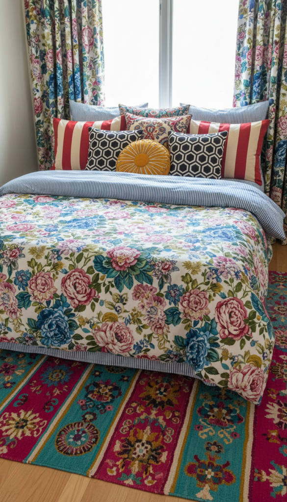 When selecting your throw blankets and pillows, mix and match patterns like florals, stripes, or geometric shapes. The goal is to create visual interest, so go ahead and experiment with bold colors and eclectic designs that suit your personality.