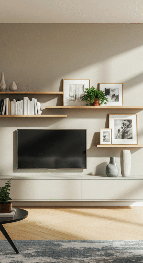 Want your TV area to double as a decor display zone? Choose a floating unit with open shelves for books, plants, or art pieces.
