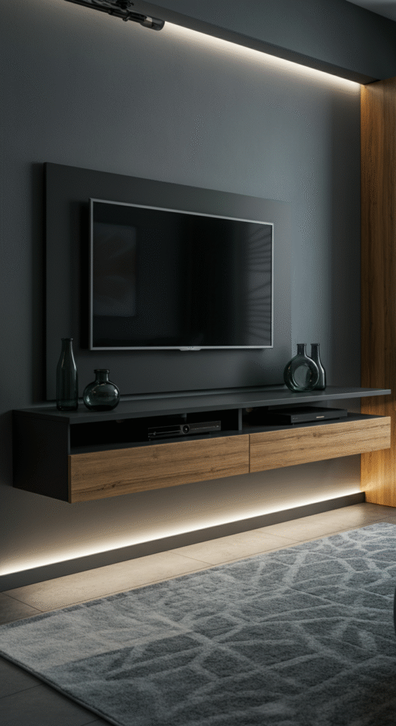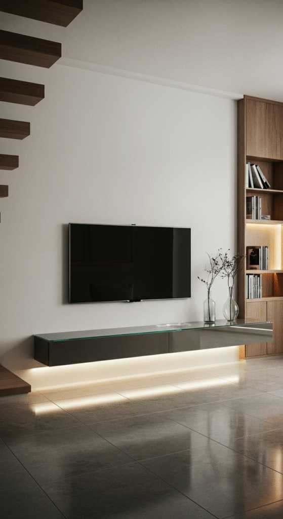 Design Idea: Add LED strip lighting beneath the unit for a futuristic, ambient glow that enhances the floating illusion.