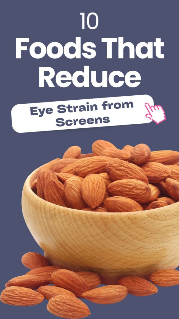 Almonds are rich in vitamin E, which protects eyes from oxidative damage caused by free radicals from screen exposure. Vitamin E also supports retinal health and reduces the risk of age-related vision problems.