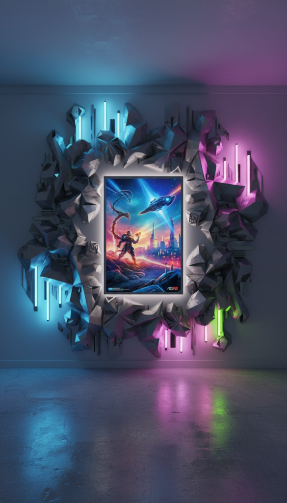 Bring your walls to life with holographic or 3D wall art. These types of art pieces create a visually stimulating effect, making the room feel like it’s from a science fiction film. You can opt for 3D printed artwork, geometric shapes, or even art inspired by your favorite video games or movies. The interplay of light and shadow will enhance the futuristic feel.