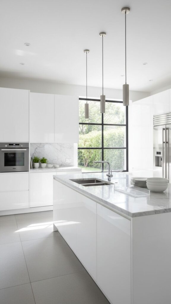 Nothing says “clean and timeless” like a white acrylic kitchen. It reflects light beautifully, making small spaces feel larger and brighter. It’s a versatile canvas that allows you to change up your backsplash or accessories without clashing.