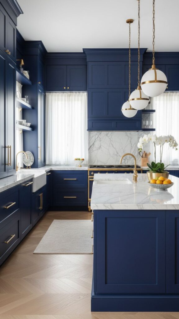 For a sophisticated and dramatic look, midnight blue is a stunning choice. This deep, rich shade adds depth and luxury to any kitchen. It works exceptionally well in larger kitchens where it won’t overwhelm the space.