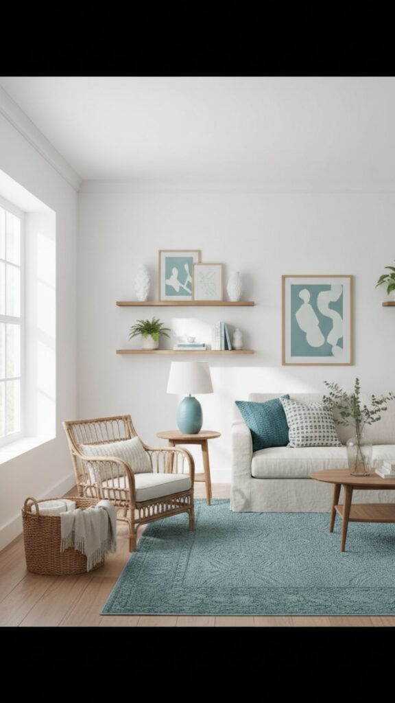 - Add a patterned rug to tie the colour scheme together.