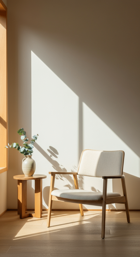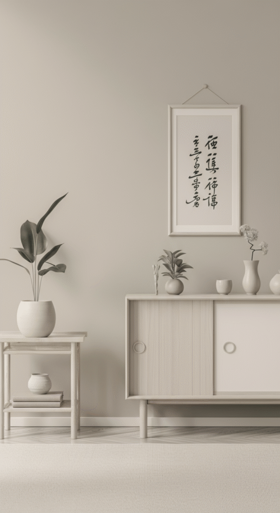 Keep the walls pale beige or muted sand. Let light filter naturally. The goal is not decoration — it’s presence.