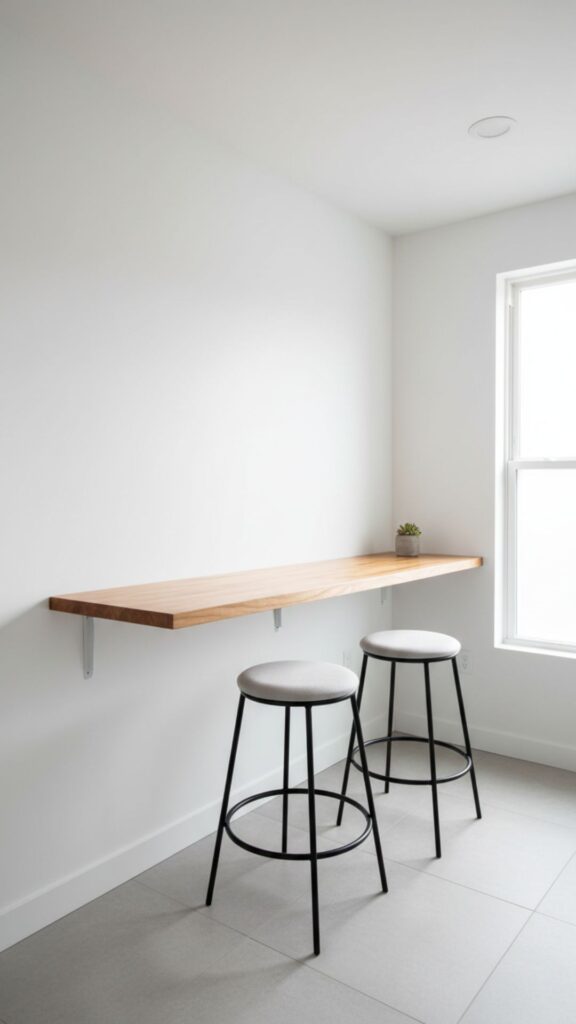 Sometimes all you need is a sliver of space to create a dining zone. A narrow console table placed against an empty wall or behind a sofa can act as a breakfast bar without protruding into the main traffic flow.