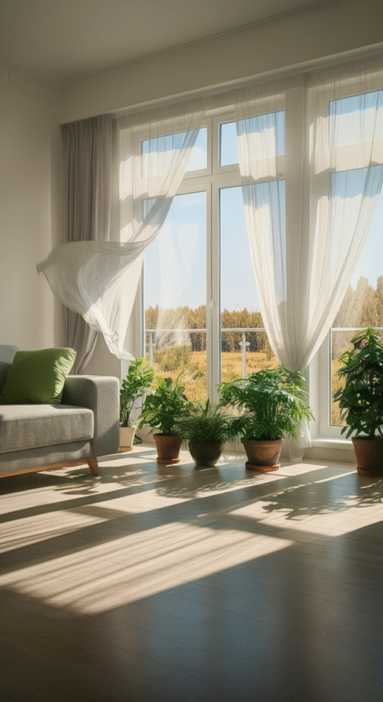 Avoid heavy curtains or dark drapes. Instead, go for sheer linen or cotton fabrics that let sunlight flow freely.