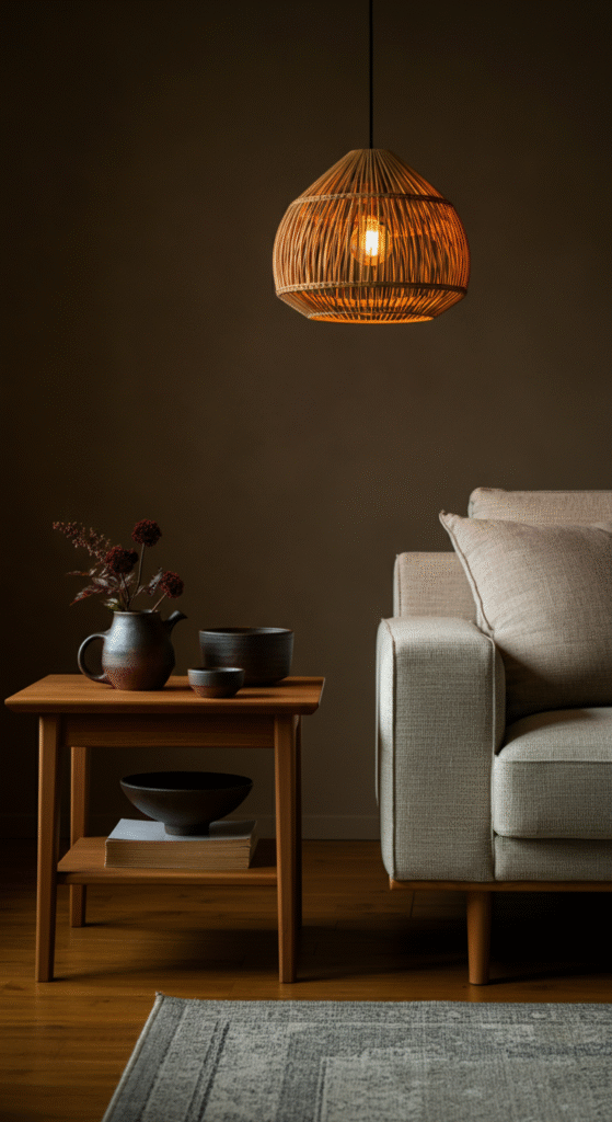 Tip: Stick to 3–4 materials max to keep harmony — for instance, linen, wool, jute, and light wood.