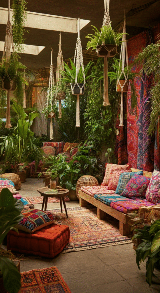 - Colorful Textiles: Use rich, vibrant textiles like tapestries, throw pillows, and patterned rugs.