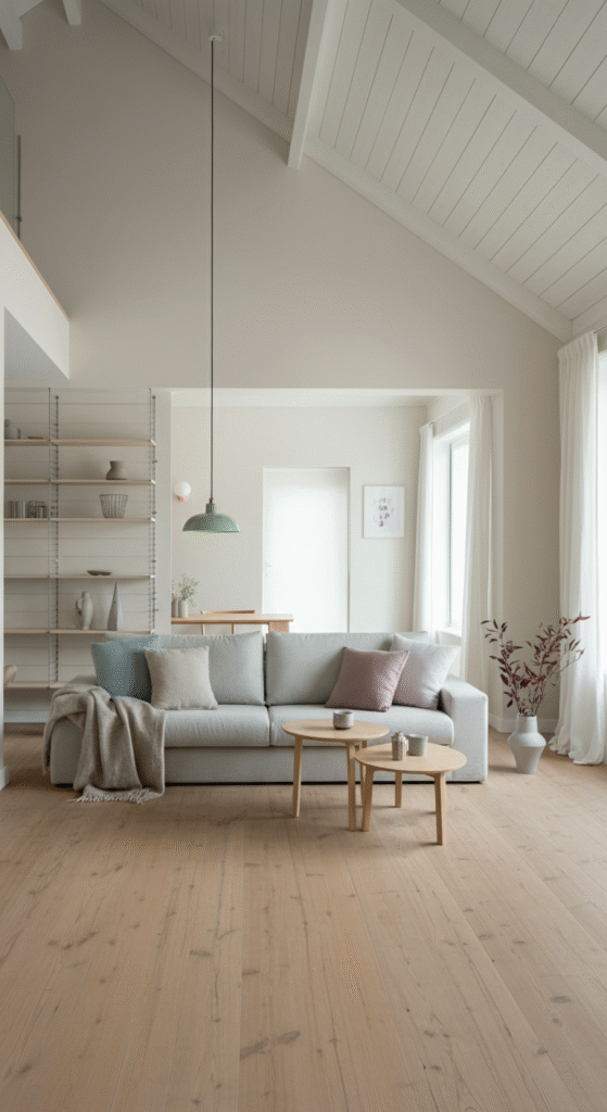 Scandinavian design brings a sense of calm and understated beauty that pairs wonderfully with high ceilings. The simplicity of the style allows the room’s architecture to shine, while functional and sleek furniture ensures the space feels cozy.