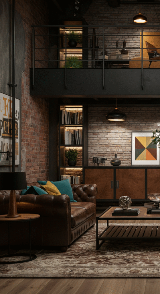 - Statement Lighting: Large, industrial light fixtures or pendant lights draw attention upward and enhance the high ceilings.