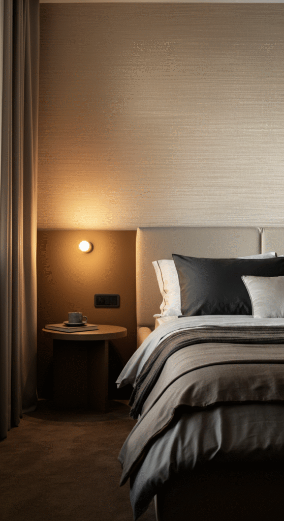 Silk textured wallpapers are one of the oldest luxury tricks in interior design. They give your bedroom a soft sheen that subtly shifts in daylight and adds depth without feeling heavy.