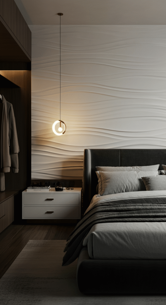 These wallpapers don’t just sit on your wall. They create shape, shadow, and dimension, giving your bedroom a modern architectural feel.