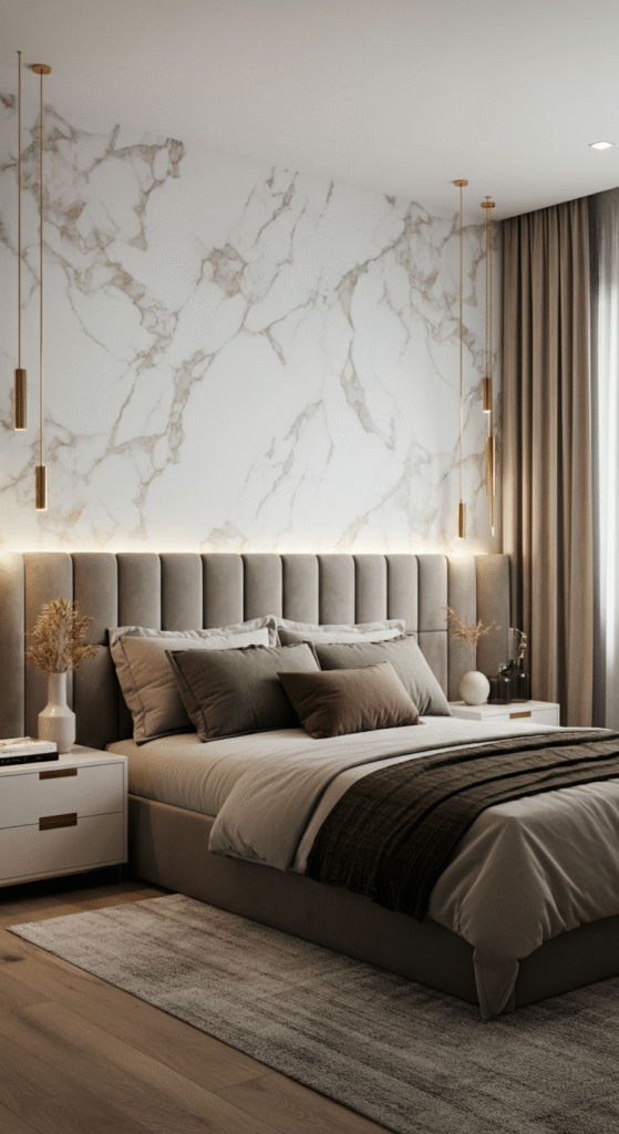 These wallpapers work best in spaces where you want comfort and elegance. They pair beautifully with upholstered headboards, soft layered bedding, and warm lighting.